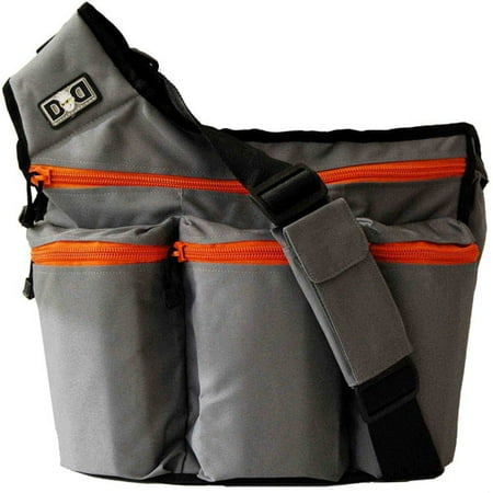Diaper Dude Diaper Bag, Gray and Orange: The dad diaper bag is ergonomic, across-the-chest design with stroller strapWide, adjustable strap has padded panel and clips open and close for easy on/offPadded back for extra comfort against your body3 exterior zip-close pockets2 large elasticized slots in backThe baby diaper bag has an elasticized bottle pocketLarge inner compartment with zip-close pocketPadded changing pad includedThe baby diaper bag is made of durable polyesterSize: 16"W x 14"H x 4.5"DQuestions about product recalls? Items that are a part of a recall are removed from the Walmart.com site, and are no longer available for purchase