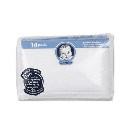 Gerber 10 Count Prefold Birdseye Diaper with Pad, White