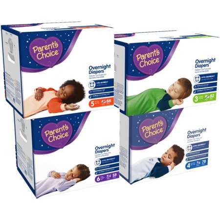 Parent's Choice Overnight Baby Diapers: Super absorbentEnhanced dryness layer for overnight leakage protectionSoft, stretchy sides for a secure fitHypoallergenic inner liner with vitamin E and aloeCottony-soft outer coverAvailable sizes: size 3 (92 count) for 16 - 28 lbs, size 4 (78 count) for 22 - 37 lbs, size 5 (66 count) for 27-plus lbs, size 6 (58 count) for 35-plus lbsSize 3 (92 count) for 16 - 28 lbsQuestions about product recalls? Items that are a part of a recall are removed from the Walmart.com site, and are no longer available for purchase