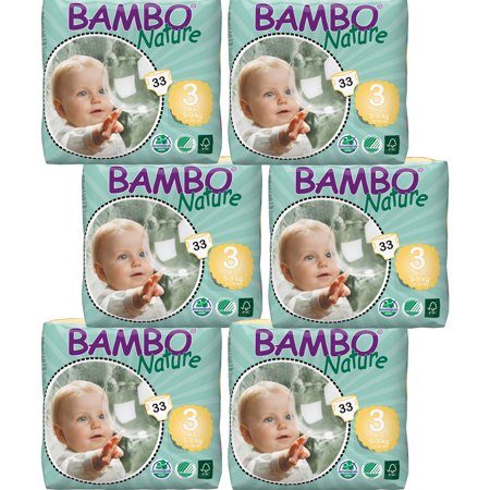 Bambo Nature Premium Eco-Friendly Diapers, Size 3 - Midi, 198 Diapers (6 Packs of 33)