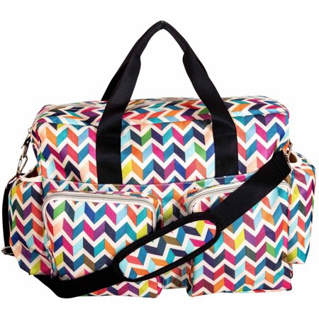 Trend Lab Deluxe Duffle Diaper Bag: Spacious enough for parents with multiple childrenSeveral organizational pockets, a durable wipe-off exterior, sophisticated style and extreme versatilityMade from durable rip-stop nylon and has an attractive nylon liningTop handle straps and adjustable, removable shoulder strap allow handy carrying versatilityRemovable stroller straps can also be used for easy attachment to the strollerDuffle features a zippered top-closure with 4 spacious exterior zippered pockets, 2 exterior side bottle pockets, 6 interior organizational pockets and an interior zippered pocketSet includes a coordinating changing pad and a clear "dirty duds" zippered pouchBag measures 16" x 12" x 6" with two 24" handles and a 34"-46" adjustable strapQuestions about product recalls? Items that are a part of a recall are removed from the Walmart.com site, and are no longer available for purchase