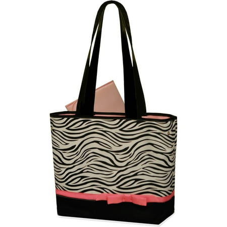 Baby Essentials Zebra Diaper Tote: Tote bagLight-colored interior liningMultiple interior pocketsMagnetic snap closure1 external pocket2 elastic bottle holdersSturdy double strapsMatching changing pad includedMicrofiber fabricLining and changer wipe cleanQuestions about product recalls? Items that are a part of a recall are removed from the Walmart.com site, and are no longer available for purchase