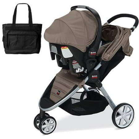Britax B-Agile and B-Safe Travel System with car seat and diaper bag in Sandsto