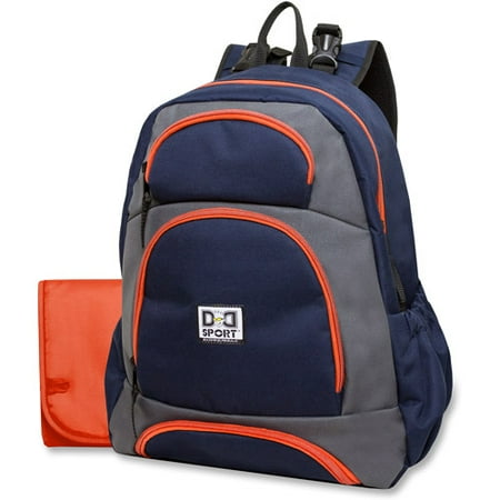 Diaper Dude Backpack: Size: 17-1/2" x 13-1/2" x 7-1/2"Interior has 2 pockets and 1 padded tablet pocketInterior has "Dads Checklist" printed insideExterior has 5 pockets1 foil insulated zip compartment for bottles and foodIncludes a 12" x 24" changing padFeatures adjustable padded shoulder/straps and stroller attachment clipsQuestions about product recalls? Items that are a part of a recall are removed from the Walmart.com site, and are no longer available for purchase