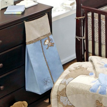 Giving it playful style, a funny monkey swings into the cool-toned scene on this diaper stacker
