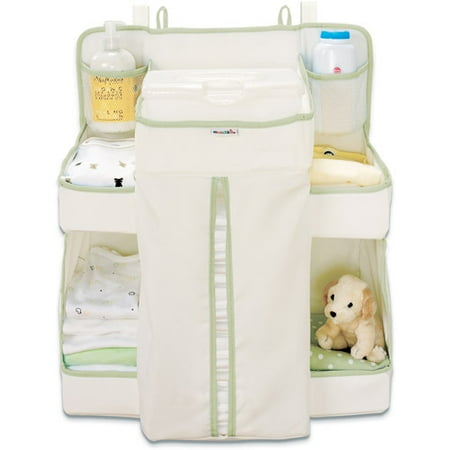 Munchkin Diaper Change Organizer: Munchkin diaper organizer keeps diapers, wipes and accessories arranged and handyEasily attaches to cribs, dressers, changing tables, walls or doorsDiaper dispenser provides easy access without diapers falling outBaby diaper organizer and dispenser holds over 50 diapers8 handy storage areasSimple design easily coordinates with any decorStore all your other essentials, such as wipes, cotton, small towels and morePractical and must-have accessory for mothers of babies and small childrenOccupies little space in your changing table setup