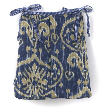 This blue and tan ikat print is used to create a decorative item that is as functional as it is fashionable