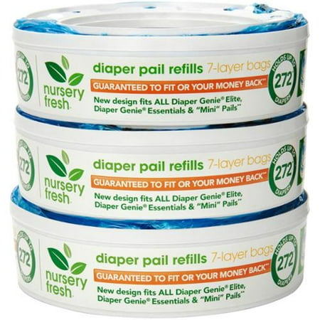 Pack of 2 for the UPC: 735282241093 These nursery fresh diaper pail refills are compatible with genie elite Diaper genie II elite Diaper genie essentials and diaper genie II pails The refill bags are made with 7-layer film and offer the ultimate in odor protection This 3pk of refills holds up to 816 newborn diapers