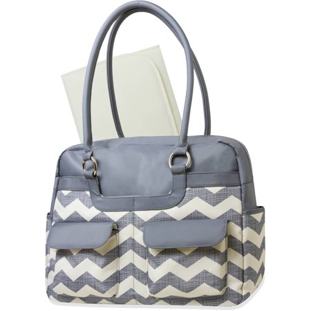 Baby Essentials Chevron Microfiber Diaper Bag, 2-Piece Set: Microfiber exteriorDouble tubular handles7 outside pockets3 inside pocketsCoordinated changer includedExterior dimensions: 16"W x 5.5"D x 12.5"HQuestions about product recalls? Items that are a part of a recall are removed from the Walmart.com site, and are no longer available for purchase