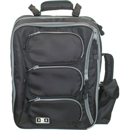 Diaper Dude Convertible Diaper Bag, Black: Removable padded shoulder strapsDual access front compartmentBuilt-in stroller strapsInsulated bottle holder conveniently located at arm's reachConvenient "tuck-away" backpack strapsLarge rear compartmentTop and side carry handles3 convenient front compartments for storing food, bibs, utensils and moreConverts from messenger bag to backpackBreathable mesh paddingInterior key holderChanging pad includedQuestions about product recalls? Items that are a part of a recall are removed from the Walmart.com site, and are no longer available for purchase