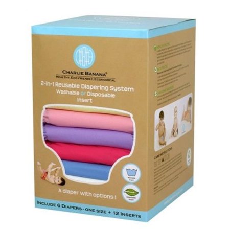Charlie Banana diapers are a 2-in-1 in- reusable diaper system- Its a cloth diaper but with a smart front panel that gives you the option of tucking in a disposable pad for those special occasions- With Charlie Banana diapers you get the best of both diaper worlds- 6 Diapers- 12 Inserts- Princess- Size - Small SKU: WNCD437