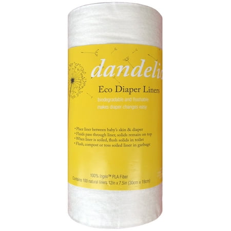 Related Product Dandelion Diapers Natural Diaper Liners, Biodegradable and Flushable, 100% Ingeo - 100 Sheet Roll