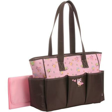 Baby Boom Tote Diaper Bag, Owl:100 percent polyester Top-zip openingSpacious main compartment features separate storage pocketsTop handles for easy and comfortable carrying Fun owl graphics Coordinating changing pad included Spot clean with damp clothDimensions of bag: 16"W x 5"D x 12"H Questions about product recalls? Items that are a part of a recall are removed from the Walmart.com site, and are no longer available for purchase
