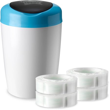 Tommee Tippee Simplee Diaper Pail + 4pk Cassette, Blue: Multi-layer film and smart seal lid block all odorsFilm contains antibacterial ingredient that kills 99 percent of germsEach refill cartridge can dispose of up to 180 diapersIncludes 4 refill cartridges